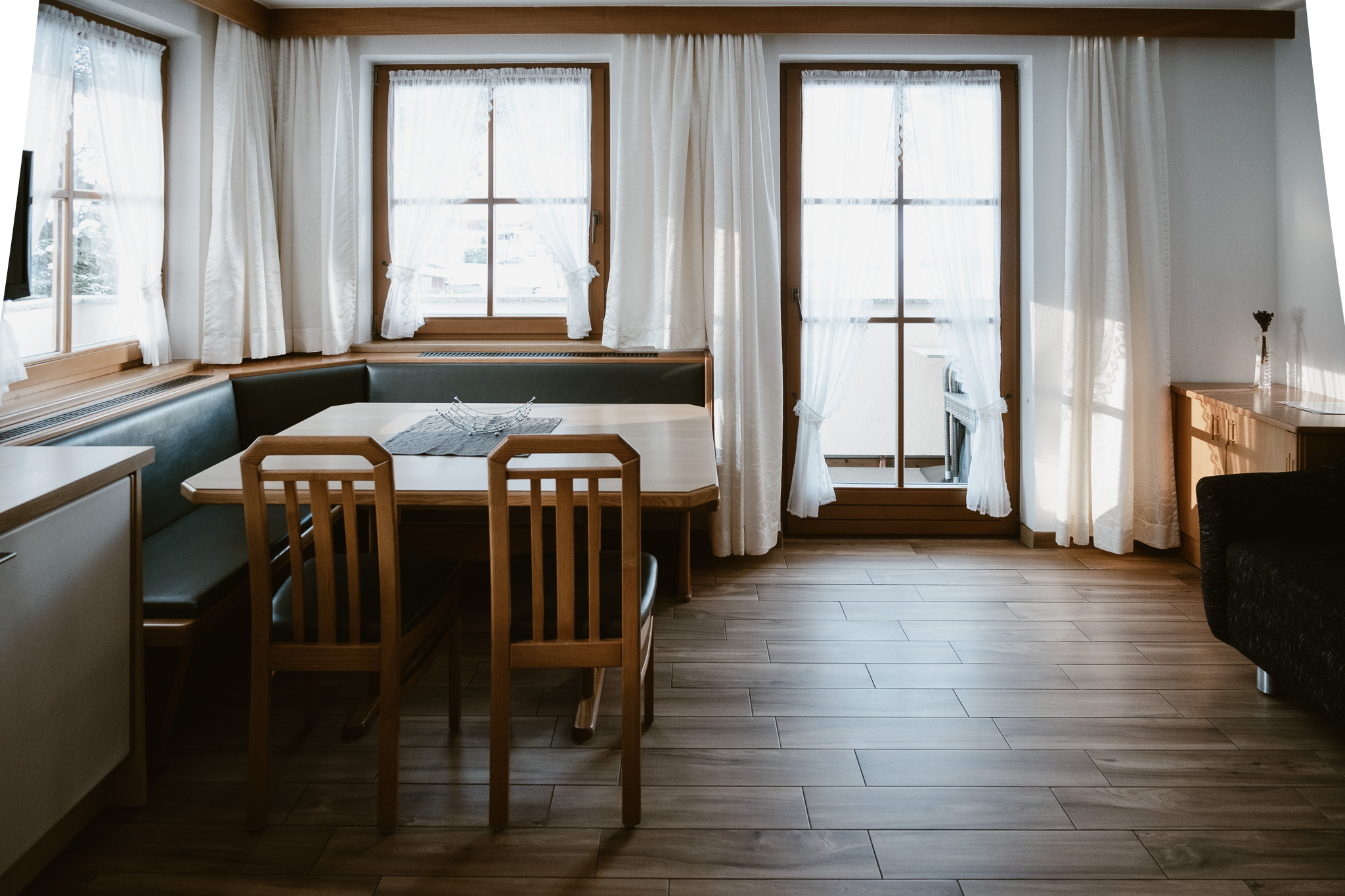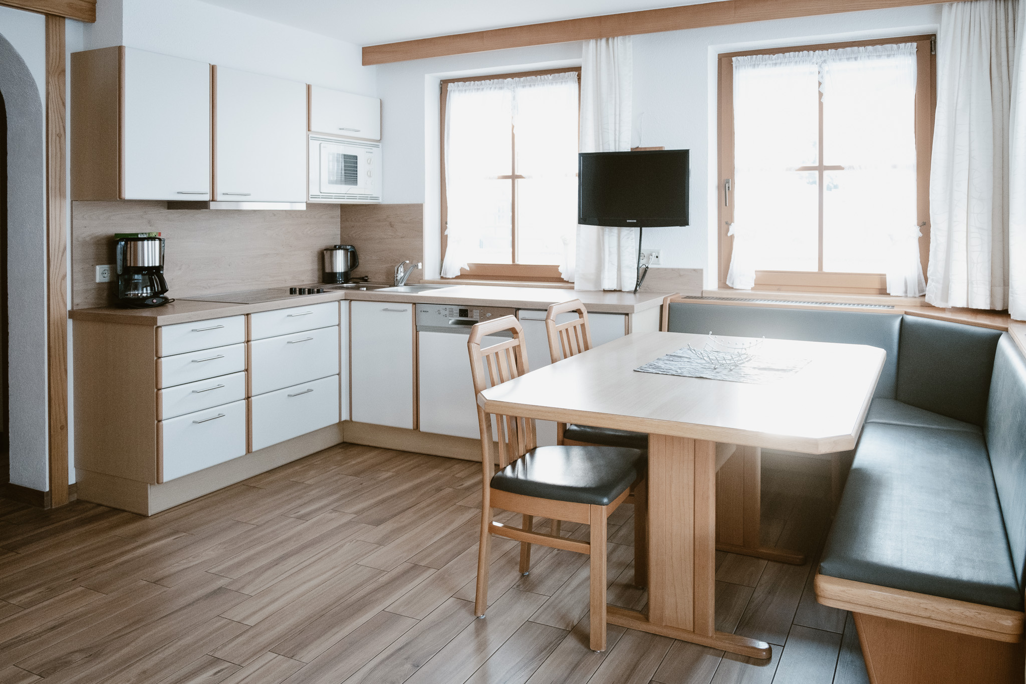 In unserer 50 m² großen Apartment Maria mit sonnigem Westbalkon finden Sie ihr gemütliches Tiroler Zuhause auf Zeit. Freuen Sie sich auf ein Wohnschlafzimmer für zwei Personen mit voll ausgestatteter Küche, ein kuscheliges Schlafzimmer für drei Personen sowie Dusche und WC – perfekt für entspannte Urlaubstage!